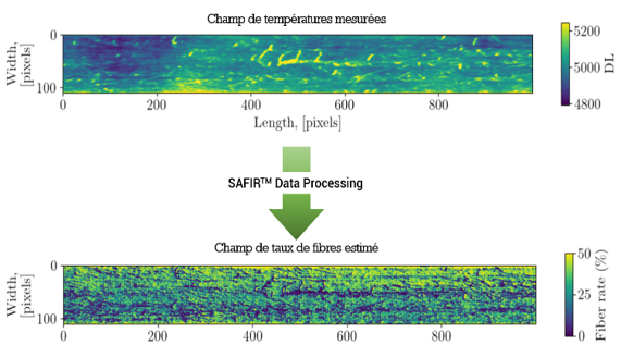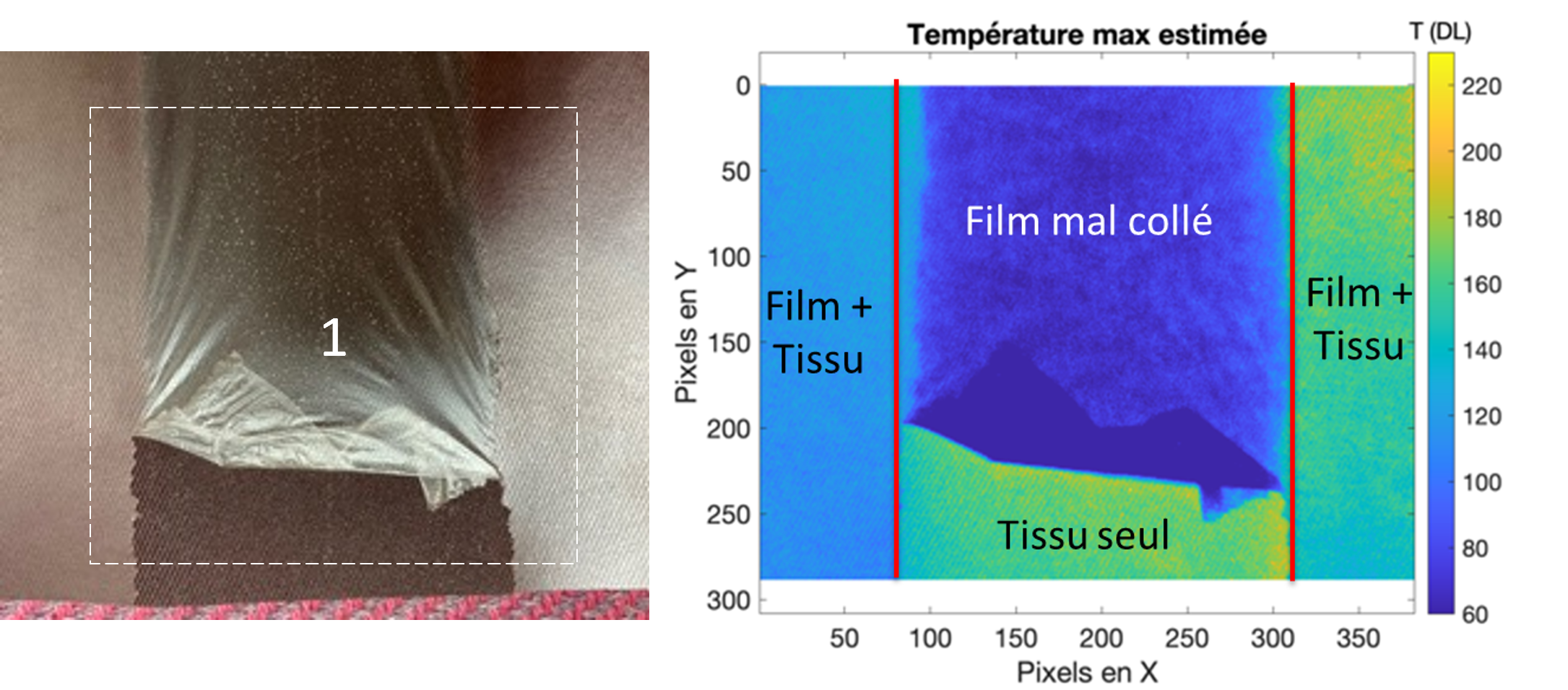En particulier la thermographie peut s’intégrer dans une machine de placement de fibres pré-imprégnées pour en contrôler la qualité pendant le processus en exploitant le flux thermique utilisé pour polymériser les couches, et être utilisée en contrôle qualité post production sur les produits finis.