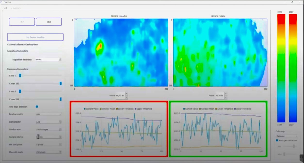 La thermographie combinée à des équipements optiques pointus et des traitements pour maîtriser les propriétés émissives des systèmes permet des caractérisations avancées pour monitorer des changements de phase dans des procédés de fabrication ou de production d’énergie à très hautes températures et à très grande vitesse.