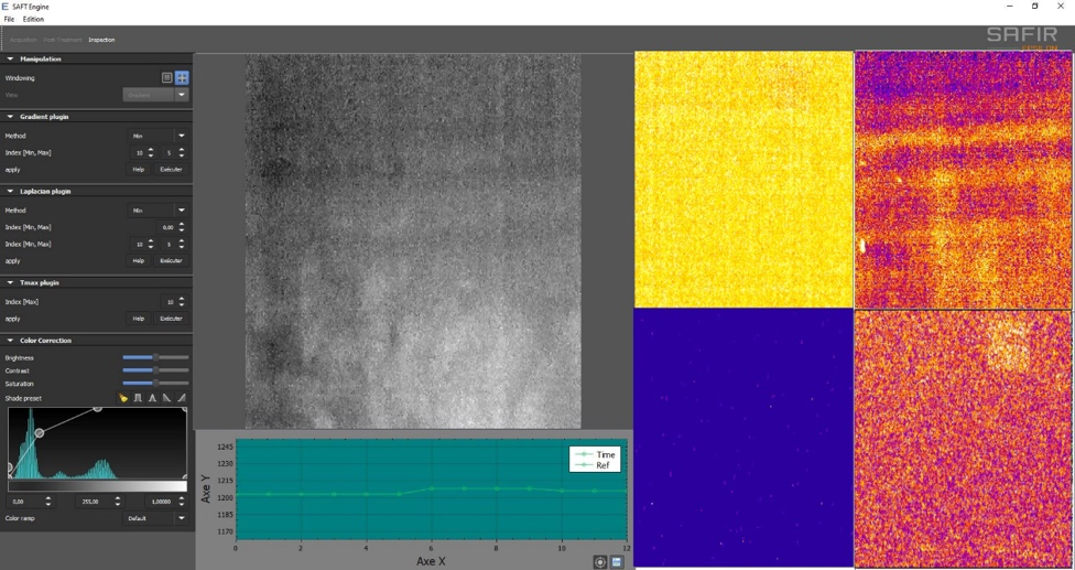 Ce type de caractérisation reste à portée de l’industrie grâce notamment à la performance des chaînes de traitement de données développées chez EPSYL-QNDT : Logiciel SAFIR